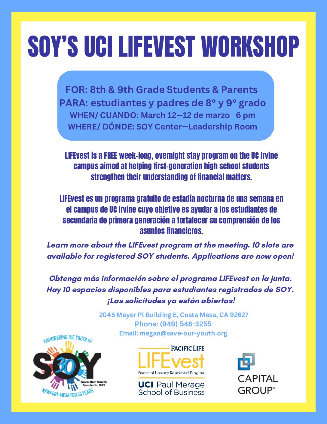 8th & 9th grade UCI LifeVest College-Bound Meeting
